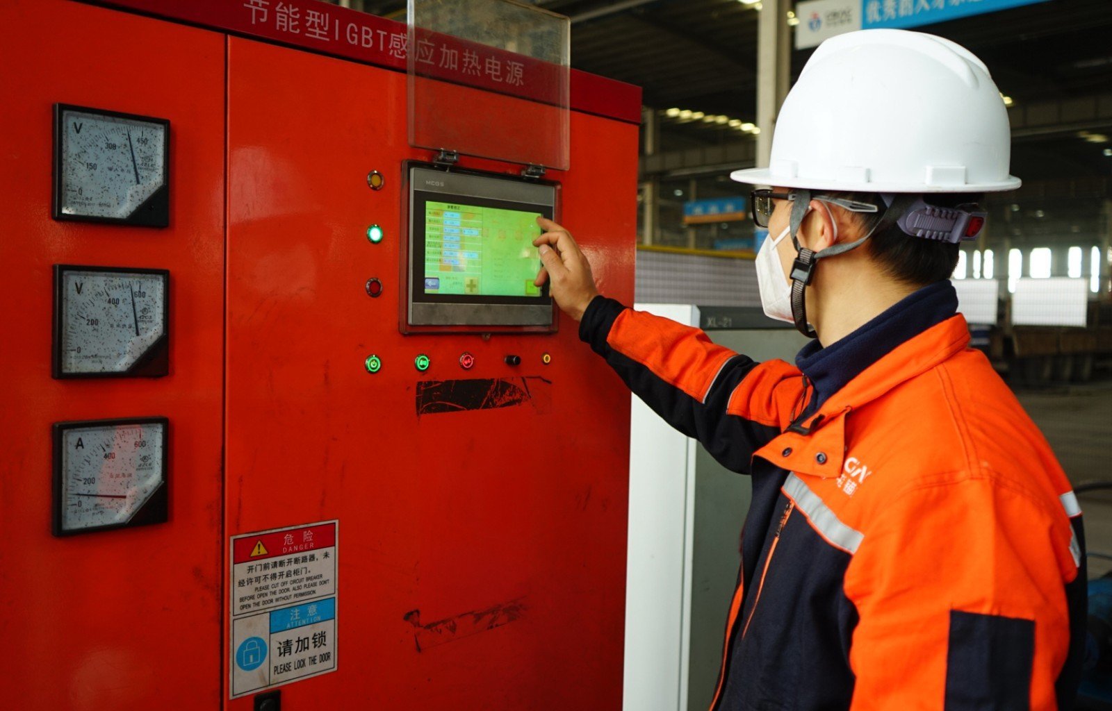 ▲CSAC technical engineer operating the controller of energy-saving IGBT induction heating power supply