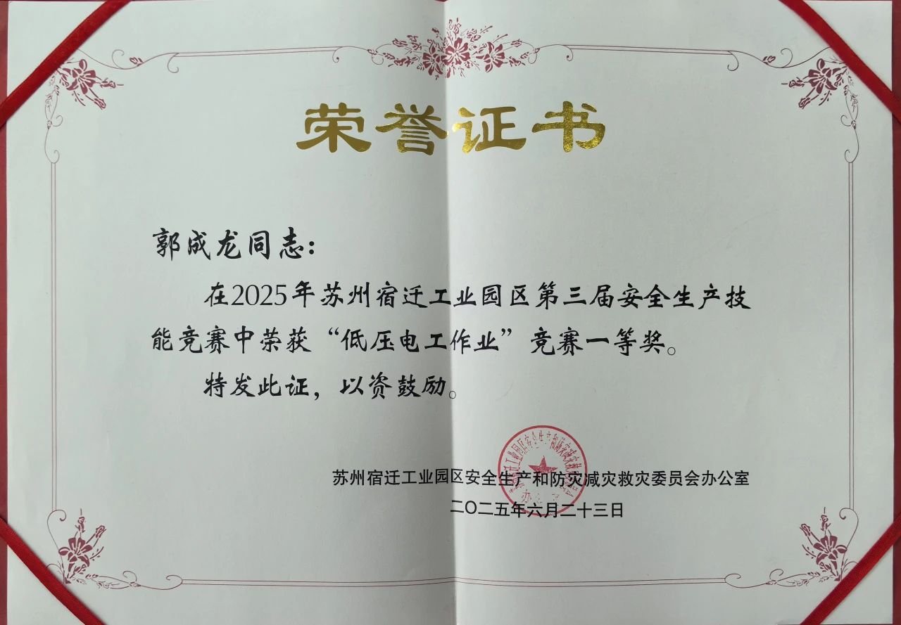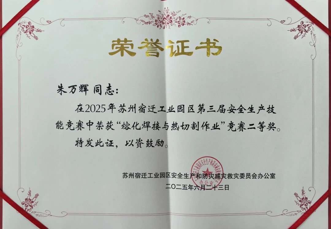 On June 16th, the third safety production skills competition of Su-Shu Industrial Park came to a close at the Safety Production Qualification Examination Center in Suqian City. After multiple rounds of intense competitions, Guo Changlong from the Equipment Department of China Shipping Marine Equipment (Jiangsu) Co., Ltd. won the first prize in the "Low Voltage Electrical Work" competition with outstanding performance, while Zhu Wanhui from the Production Department won the second prize in the "Fusion Welding and Thermal Cutting Work" competition with his superb skills. This excellent result not only confirmed CSAC's strategic positioning of "Technology as the Foundation, Talent Enhancing Safety", but also demonstrated the profound foundation of the enterprise's safety production management system.